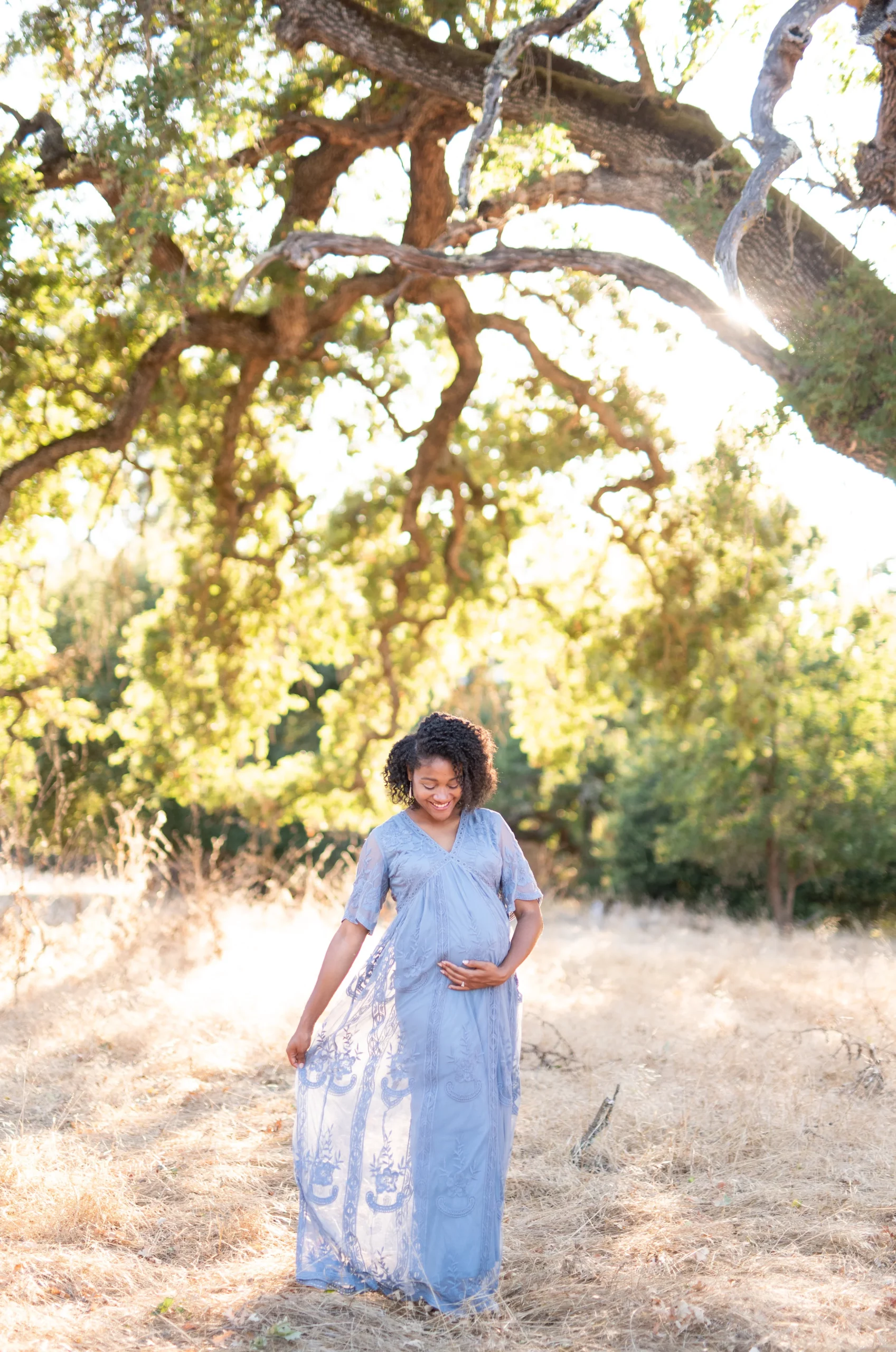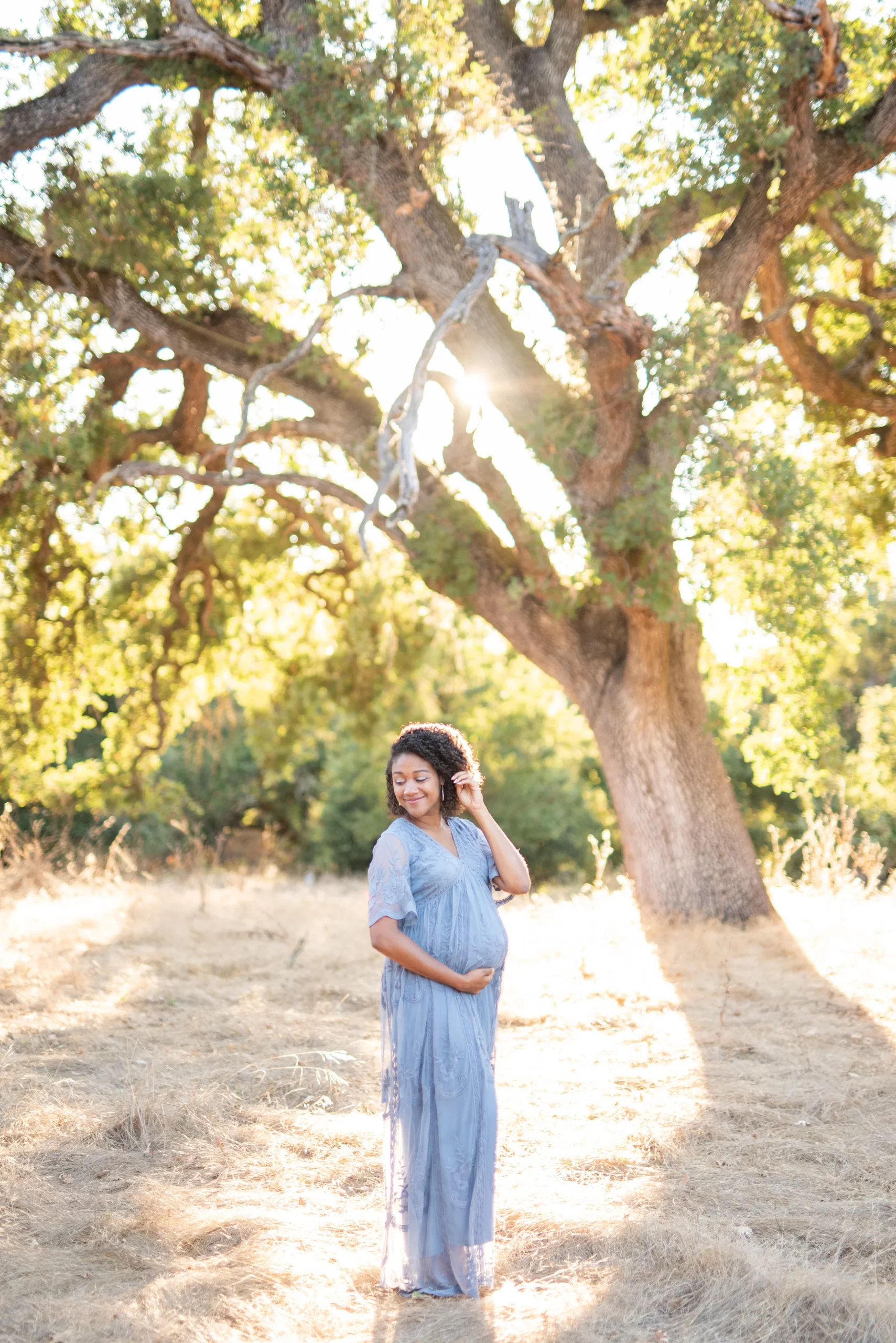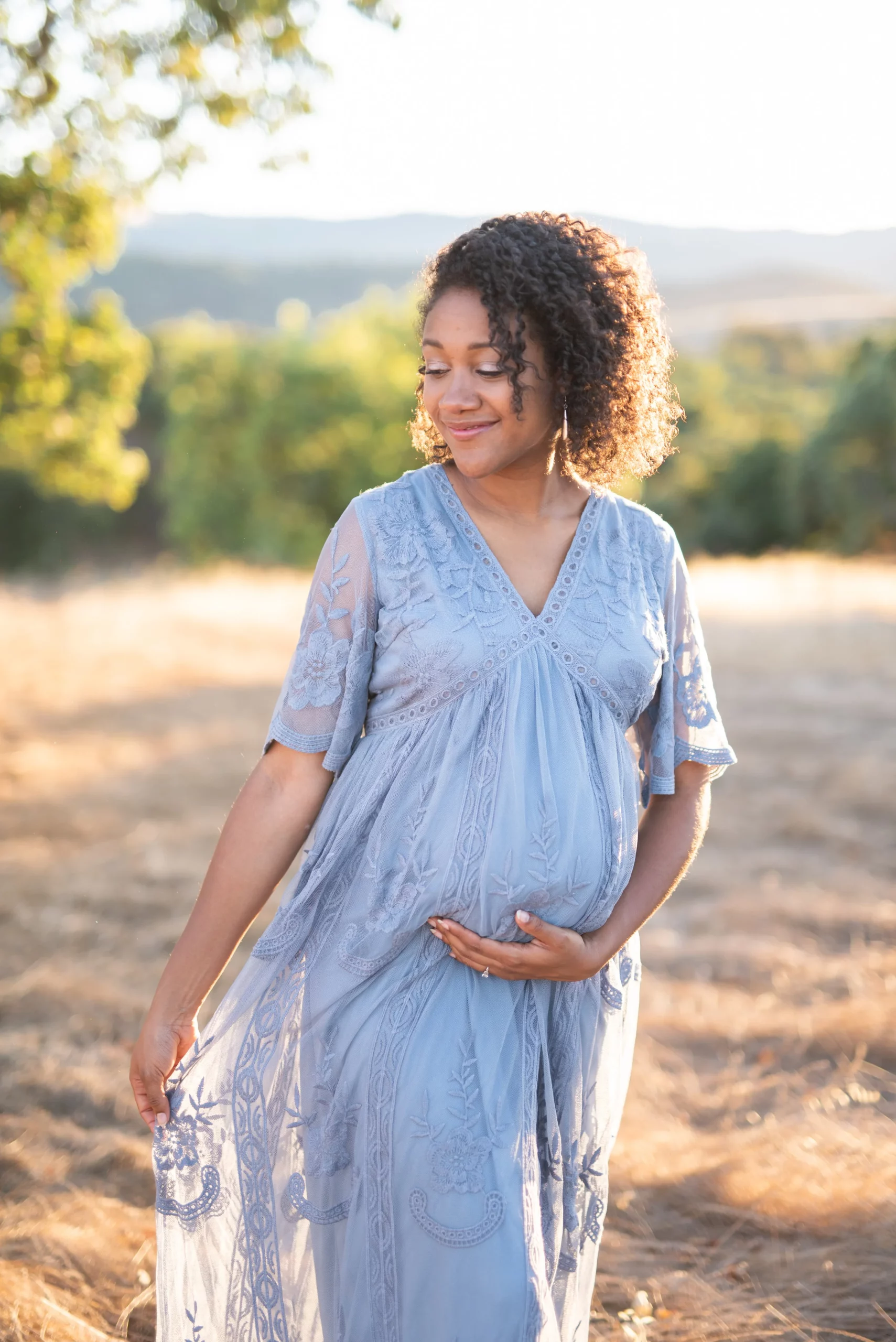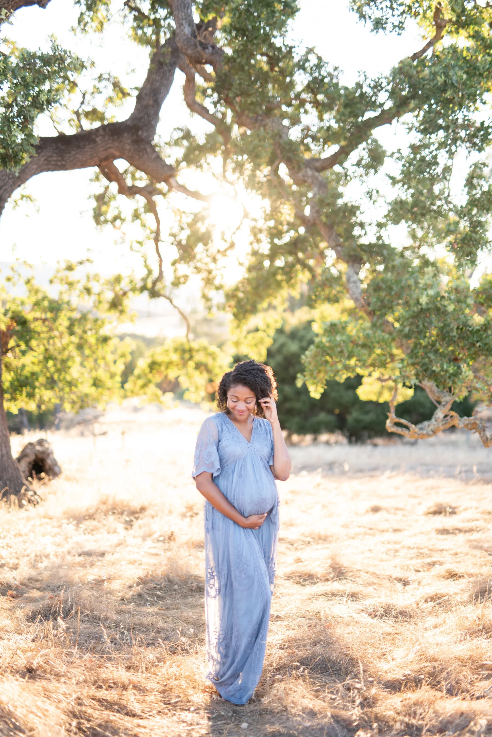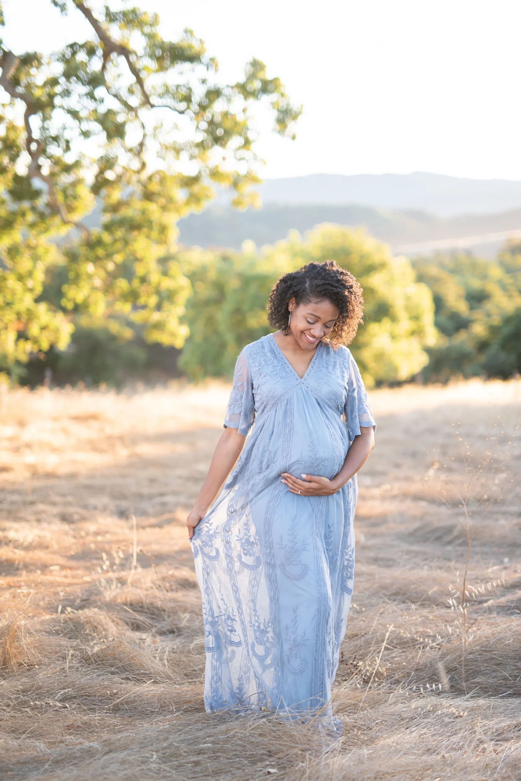 This beautiful lady right here happens to be a dear friend of mine, and so it was very special to get to take her maternity photos last weekend. Karriyma and I were pregnant with our first babies at the same time (our daughters were born one month apart!) and now they are growing up together and play together often! We intended to take her photos at China Beach in San Francisco but on the day of our shoot it was very misty so we decided to head down to Stanford’s Dish Trail. Isn’t it a stunning location? I’ll never get tired of it!